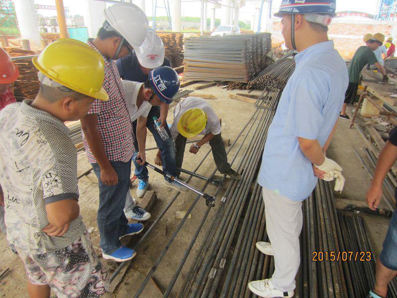 南外環(huán)項目辦根據(jù)江西省交通工程質(zhì)量監(jiān)督站《關(guān)于加強滾軋直螺紋鋼筋機械連接施工質(zhì)量控制的通知》文件精神,在第九次生產(chǎn)調(diào)度會上明確 A1標(biāo)為滾軋直螺紋機械連接整治示范點。
